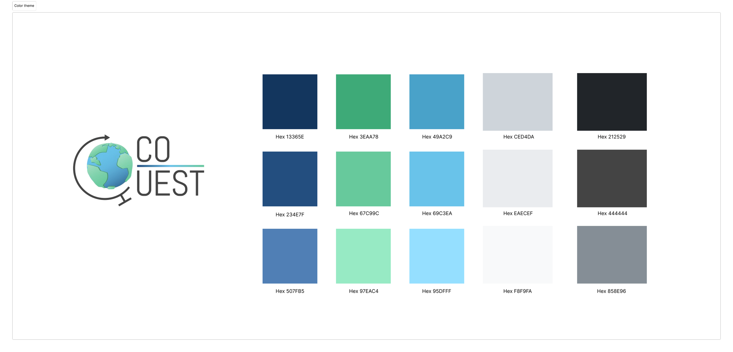 CoQuest's logo features a globe and reflects the Earth's natural colors. For the landing page, I created a color palette that aligns with this theme and chose to implement a warm and welcoming design concept.