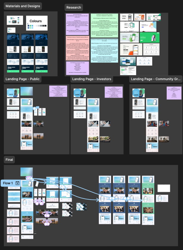 With our insights and objectives in mind, we aimed to develop a solution tailored for three distinct target audiences by creating additional pages. We created a user flow in Miro to align our team members and avoid design inconsistencies.